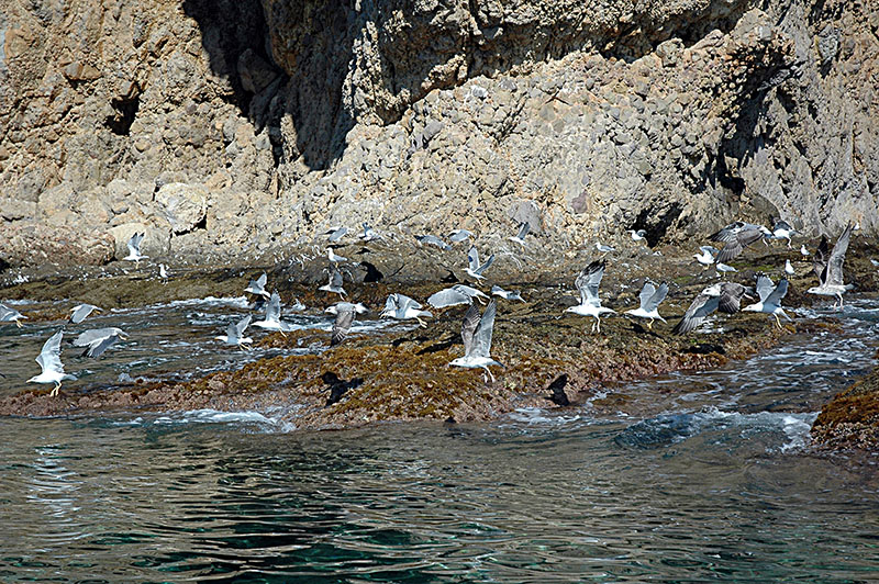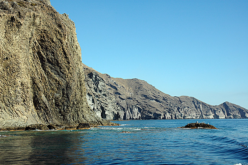 Für Gruppen ab 6 Personen empfehlen wir Bootstouren im nördlichen Bereich des Naturparks Cabo de Gata, bei denen Sie spektakuläre unzugängliche Orte mit steilen Klippen von mehr als 200 Metern entdecken können, an denen die Möwen "schweben" können. Tauchkormorane, Seeschwalben und eines der extravagantesten Naturschauspiele: Schwärme fliegender Fische, die aus dem Wasser springen und buchstäblich über die Oberfläche fliegen (dies ist nur in der Migrationssaison zu sehen). Manchmal können wir auf unseren Bootstouren auch Familien von Tümmlern oder Skipjacks sehen, die ohne Unterbrechung springen.