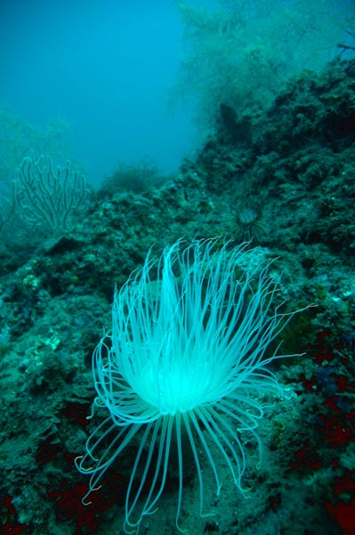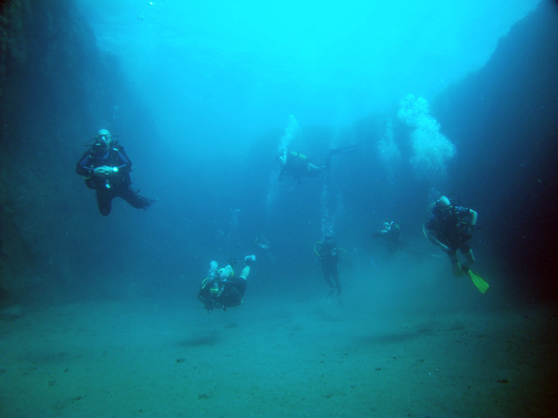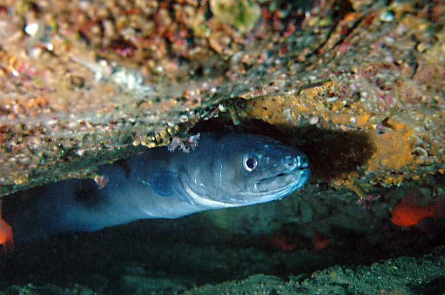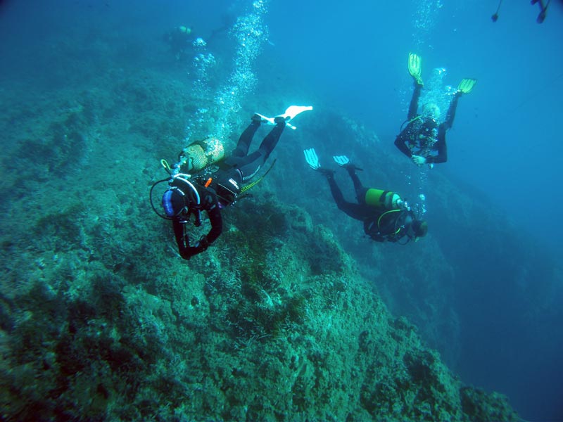 Wir beginnen das Eintauchen auf einem 5 bis 6 Meter tiefen Felsboden, von dem aus wir durch senkrechte Wände voller Farbe in einen Sandzirkus (16 m) fallen, der es uns ermöglicht, durch einen großen Bogen aus Naturstein auf eine Zunge zu gelangen Sand, der uns bis zu einer maximalen Tiefe von 31 Metern führt, wo wir große Gorgonien sowie Conger-Aale, Muränen, Tintenfische, Zackenbarsche und Schellfische finden ...