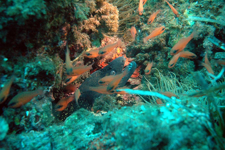 El motor nos brinda toda su belleza impresionándonos por su enorme tamaño y dimensión. Siempre encontraremos congrios y morenas escondidos en su interior, además de abadejos, meros, sargos y un largo etc. Algunas veces también los bonachones peces luna (mola mola).